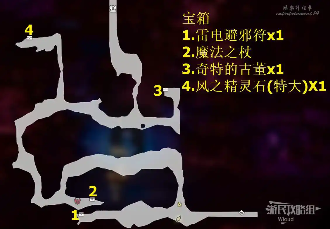 1、先去房間①,從中間的坑往下跳,擊敗標誌性怪物【猙獰的魔導機兵(聖火)】,開一個寶箱