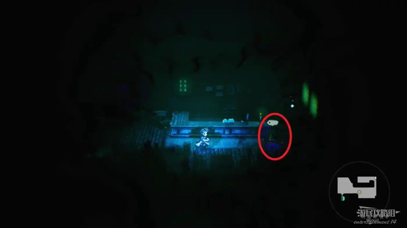 樓梯間左側找到【寶箱3】,沿著樓梯往上爬觸發劇情,在樓梯頂部下方找到【寶箱4】。