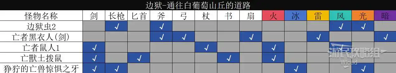 以下是【邊獄·通往白葡萄山丘的道路】的怪物弱點資訊。