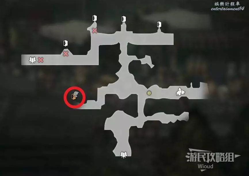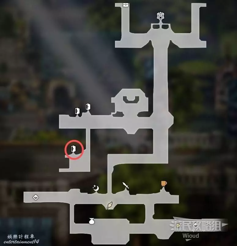 和下圖紅圈所示的門互動,門會自動解鎖。