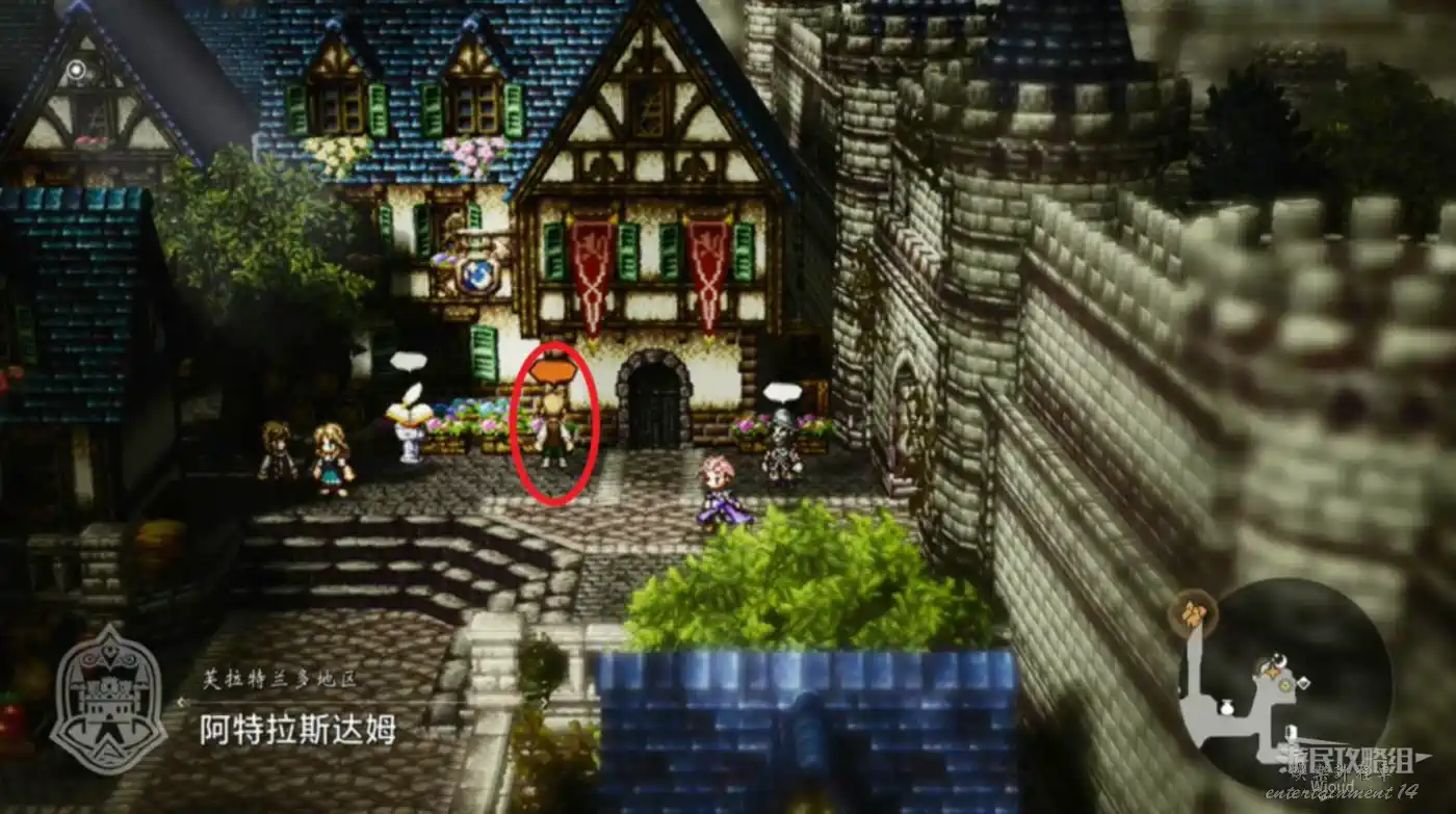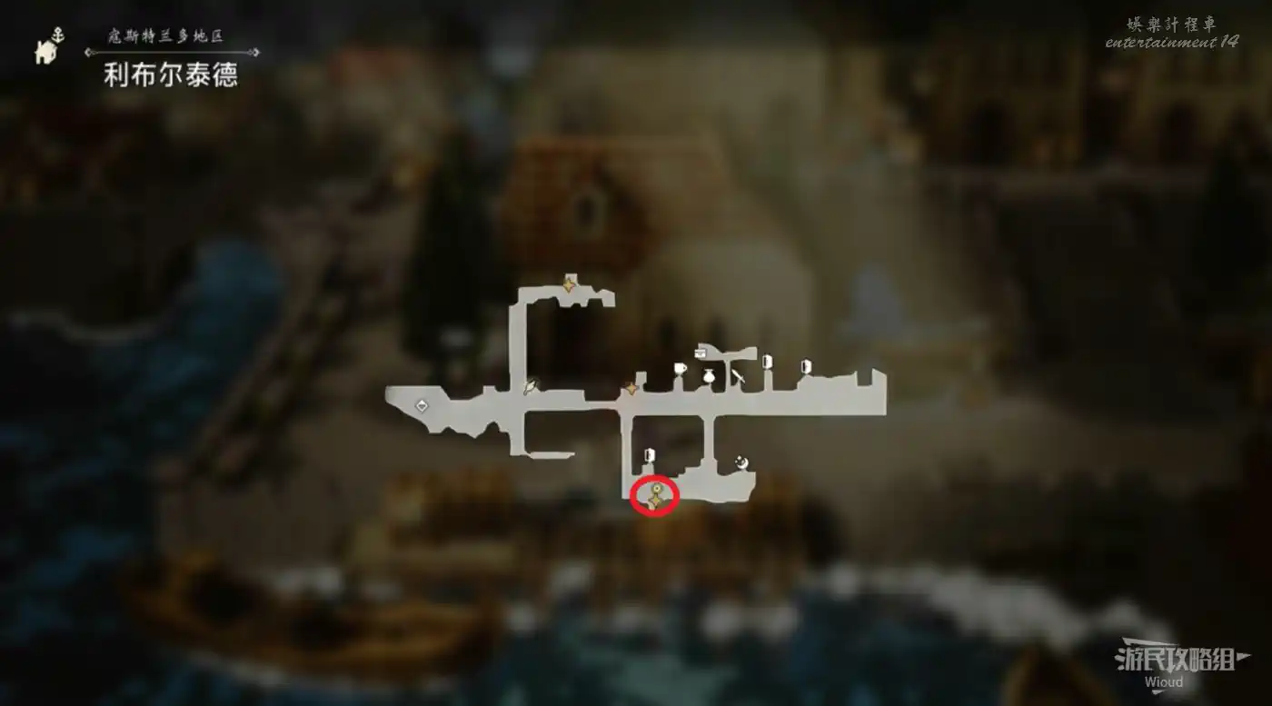 1、來到【利布林泰德】,移動到城鎮右側,和紅圈處的商人對話觸發劇情。