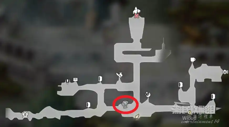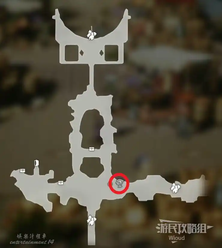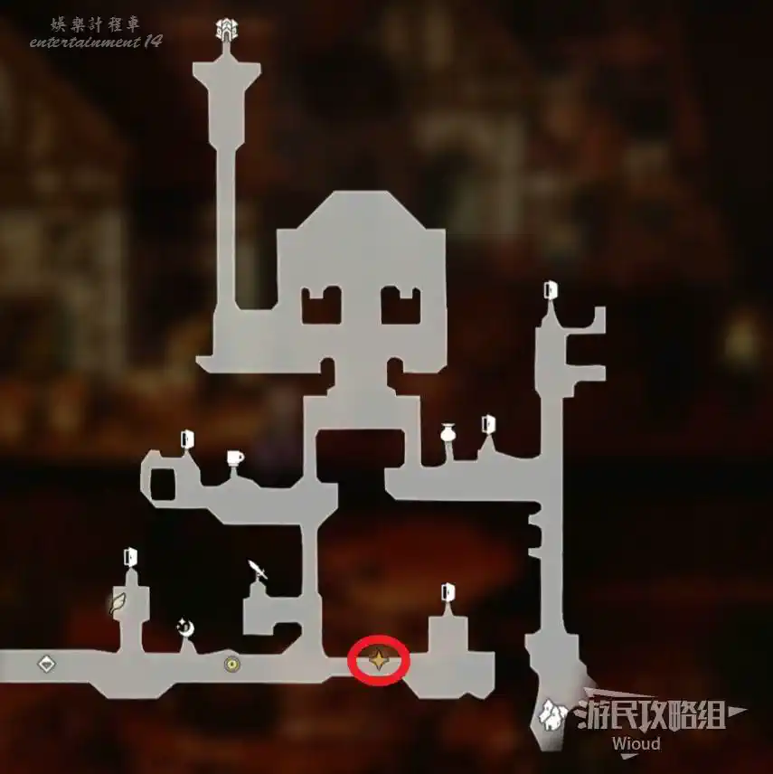 該支線需前往【原罪庭院】旁的【虛榮輝空】觸發,跟隨下圖紅色路線移動到紅圈處。