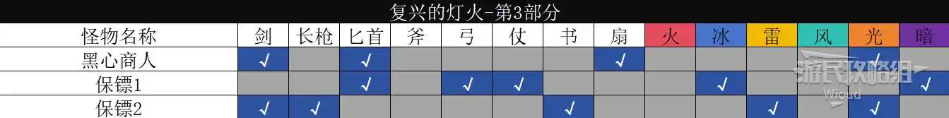 3、傳送到【希亞特珀利斯】跟隨指引和兩位元商人對話,觸發敵對商會的戰鬥,以下是敵人的弱點資訊。