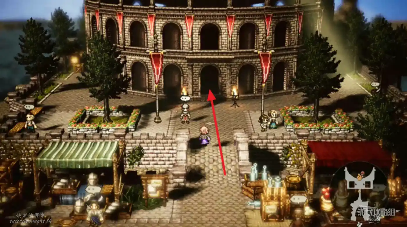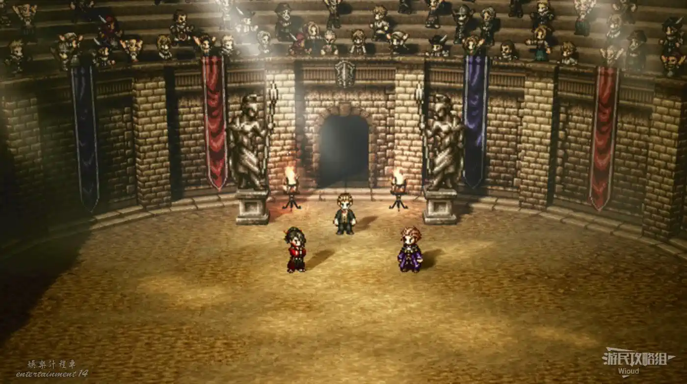 和怪物進行一場戰鬥後,首次和雷梅見面,完事回到鬥技場剛進門的地方和【德貝奇歐】對話,開啟鬥技場大賽。