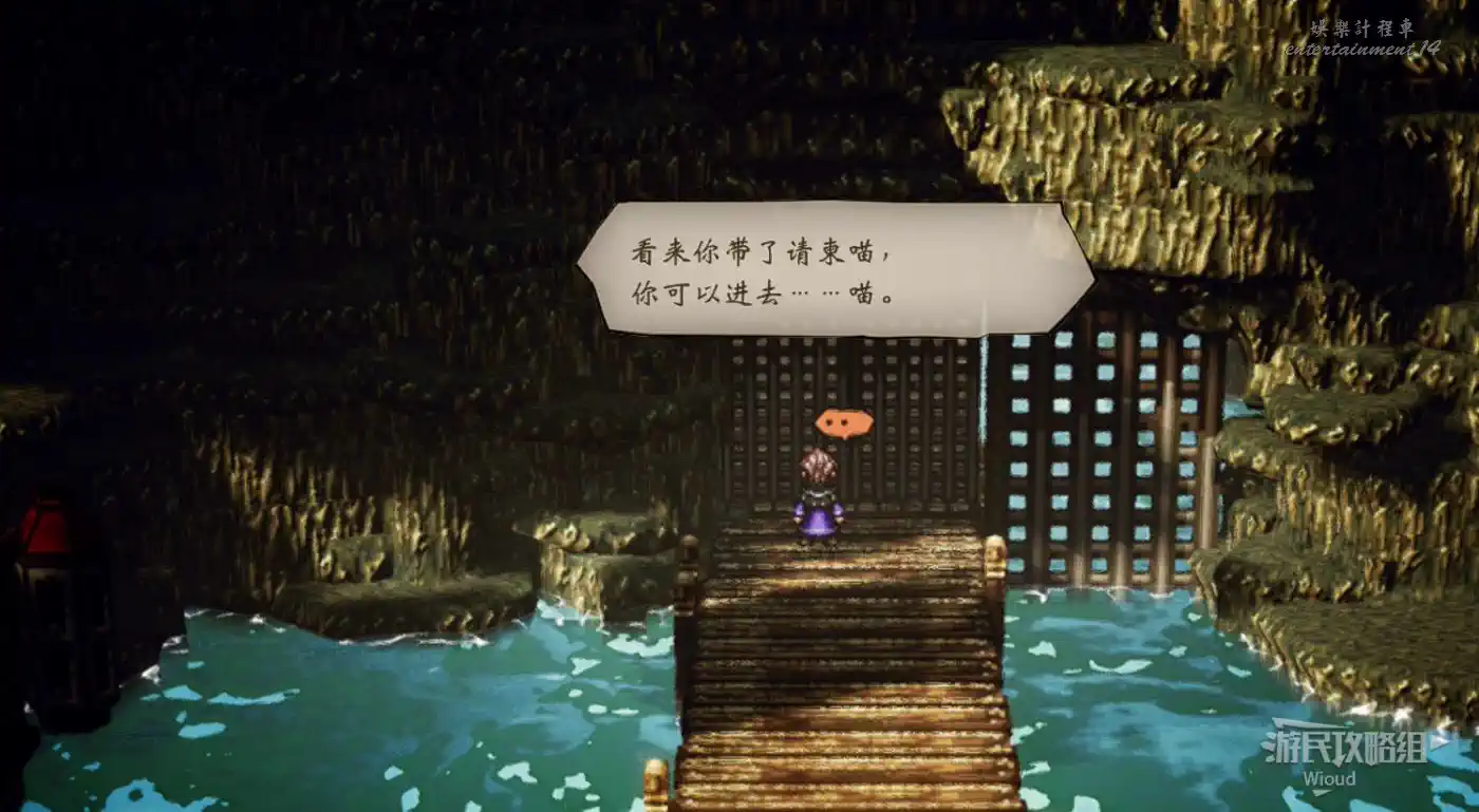 3、和門口的NPC對話,得知他的票掉在洞窟裡面。