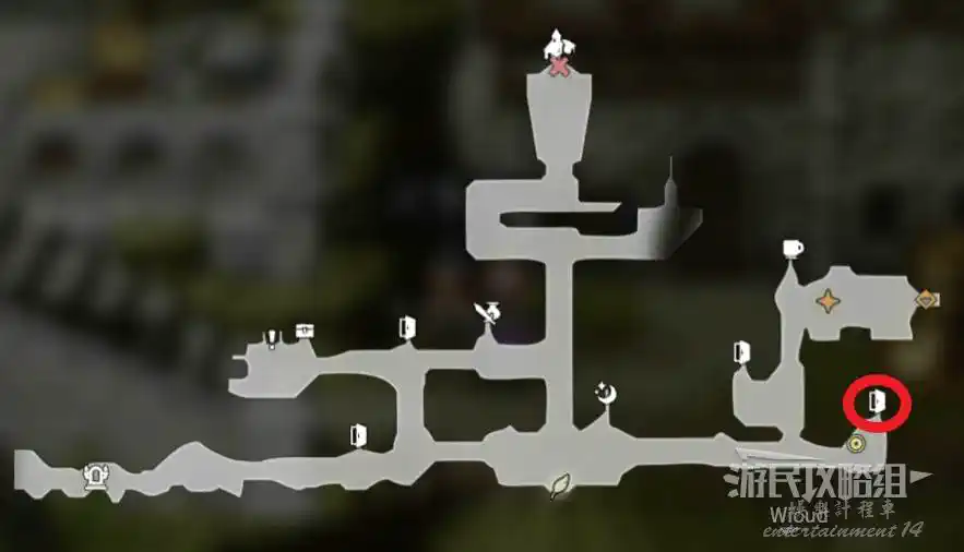 前往下層的右下角區域,在兩個樓梯中間可以拿到一個【書信碎片】。