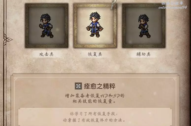 歧路旅人 0 (OCTOPATH TRAVELER 0) 痊癒之精粹收集方法 4 12 月 2025-12-04 廣告 來源:互聯網 道具名稱:痊癒之精粹 技能屬性:被動 技能效果:增加裝備者HP和SP恢復效果的恢復量。 消耗SP:被動(無消耗) 關鍵獲取位置:序章通關獎勵(三選一) 精粹描述 你學習了所有恢復手段,你掌握了有效恢復體力的方法。 要獲得此精粹,您必須在成功通關遊戲的序章後,在系統提供的三件獎勵道具中選擇“痊癒之精粹”。