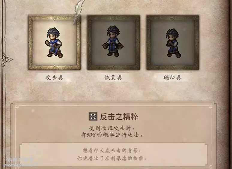 歧路旅人 0 (OCTOPATH TRAVELER 0) 反擊之精粹收集方法 4 12 月 2025-12-04 廣告 來源:互聯網 道具名稱:反擊之精粹 技能屬性:被動 技能效果:受到物理攻擊時,50%幾率反擊。 消耗SP:被動(無消耗) 關鍵獲取位置:序章通關獎勵(三選一) 精粹描述 想著那天襲擊者的身影,你琢磨出了反制暴虐的技能。 要獲得此精粹,必須在成功通關遊戲的序章後,在系統提供的三件獎勵道具中選擇“反擊之精粹”。