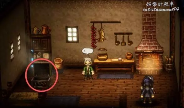玩家可以前往旅店二樓的位置,獲取寶箱。