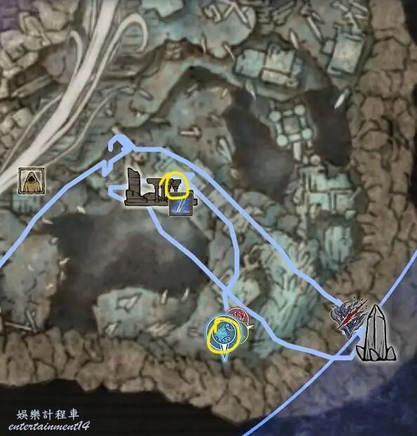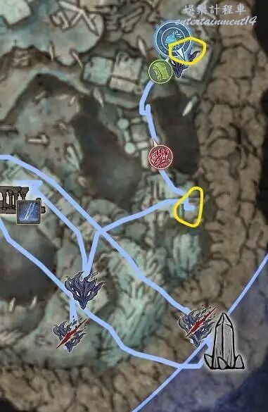 進入遺跡左邊有一個藍球boss(無血條提醒),打完後右邊走過橋到裡面往下跳有一個數值很低的紅名boss,旁邊是固定的水晶,打完右邊小路可以綠色的地方可以坐飛機回去