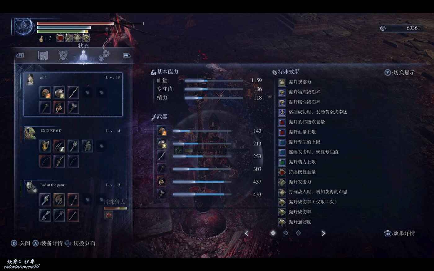 最後修女本質上其實還是近戰,打一些比較馬的boss時會很難受,比如大嘴三狼這種,因為疊不起連擊。這把我雖然非常胡,但打大嘴傷害還是比不過專職法追的滿月,打這種boss的時候可以考慮轉針對性的武器池,效果要比純近戰好很多