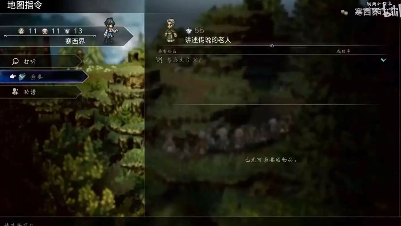 歧路旅人 0 (OCTOPATH TRAVELER 0) 禁忌大弓獲取方法 7 12 月 2025-12-07 廣告 作者:寒西界 來源:bilibili 在維克塔霍洛區域 前往鬥技場方向 沿紅色箭頭繼續走 一路走到山頂附近,找到這個NPC。 禁忌大弓就在他的身上。