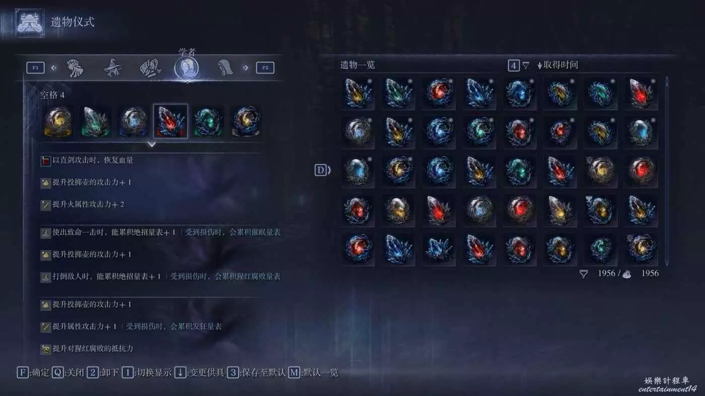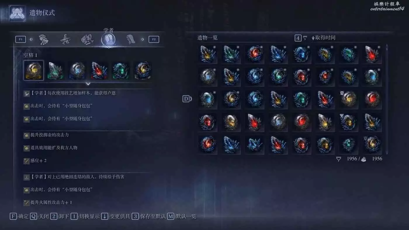 先說遺物,我認為商店兩包遺物算是必帶,給的專屬也能潤滑前期發育,那就還剩五個槽,在保證有一個包和廣域化的情況下(可以直接用另一個商店遺物解決),投壺能折多少折多少,尤其是寶貴的深夜槽位一定要是投壺+1,效果跟普通的天差地別,如果還有空餘的槽位,就折點殺敵回大屬性攻擊之類的通用詞條,總之,遺物算是比較好湊的。