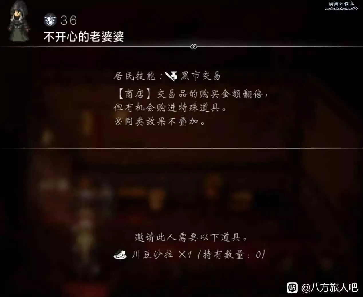 歧路旅人 0 (OCTOPATH TRAVELER 0) 川豆沙拉獲取方法 8 12 月 2025-12-08 廣告 作者:xu_super 來源:八方旅人吧 Q:貝爾肯有個不開心的老奶奶可以邀請,但是需要川豆沙拉,川豆沙拉應該怎麼獲得呢? A:多尼埃克斯裡的伐木工身上可以找到。