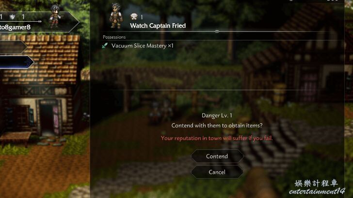 注:“贏取”會直接進入戰鬥。務必注意NPC的等級,如果戰敗,不僅無法學會技能,還會降低城鎮聲望。