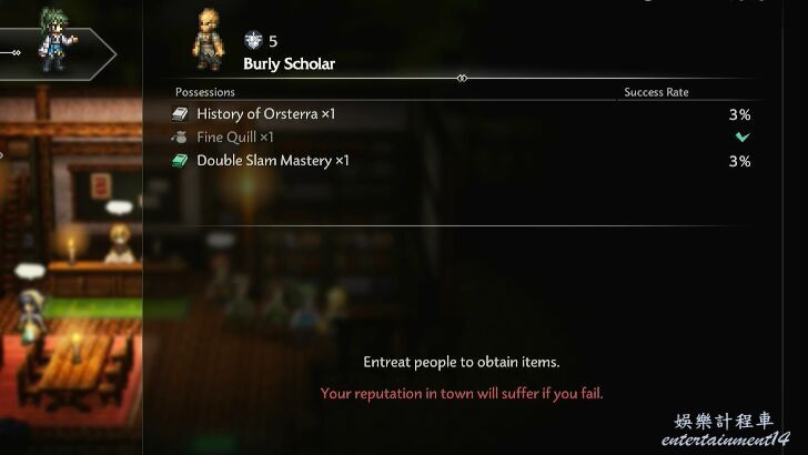 “討要”的成功率主要受你的“名聲”影響力數值和城鎮聲望高低的影響。提升名聲和聲望可以更容易地獲取技能。