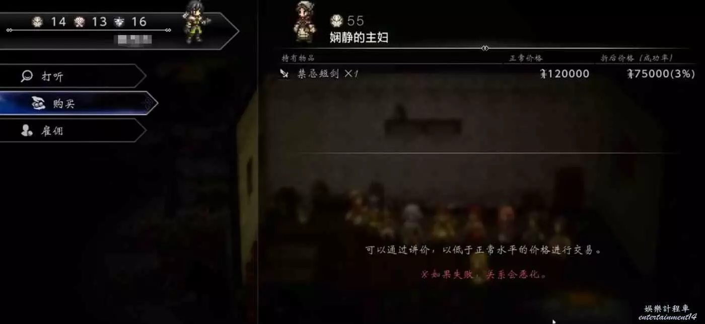 歧路旅人 0 (OCTOPATH TRAVELER 0) 禁忌短劍獲得方法 9 12 月 2025-12-09 廣告 來源:互聯網 目的地區域:前往遊戲中的“斯弗拉塔爾加”區域。 進入該區域後,沿著主路徑或提示的紅色箭頭方向繼續深入探索。 在探索過程中,注意尋找並進入下圖所示的特定房間。 進入房間後,找到NPC“嫺靜的主婦”並與其對話。 在她的商品列表中,可以找到並選擇購買“禁忌短劍”。 可選講價:在交易時,可以嘗試選擇“講價”選項。如果成功,就能以低於原價的價格購入。 講價風險:請注意,如果講價失敗,你與該主婦的關係會惡化。