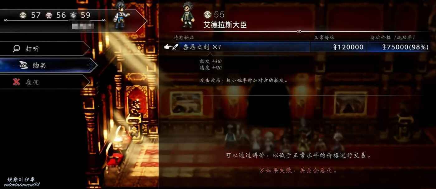 在城堡內找到名為“艾德拉斯大臣”的NPC。與他對話,選擇購買“禁忌之劍”。