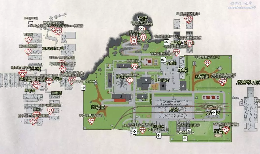 精準呈現出生點與地形佈局,幫助玩家開局即明確自身位置及各區域聯動路線;高價值物資點位標註精準至容器級別。