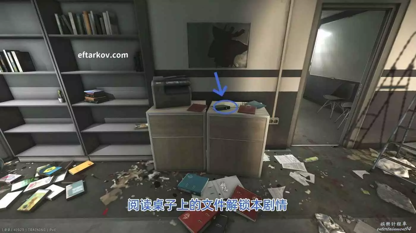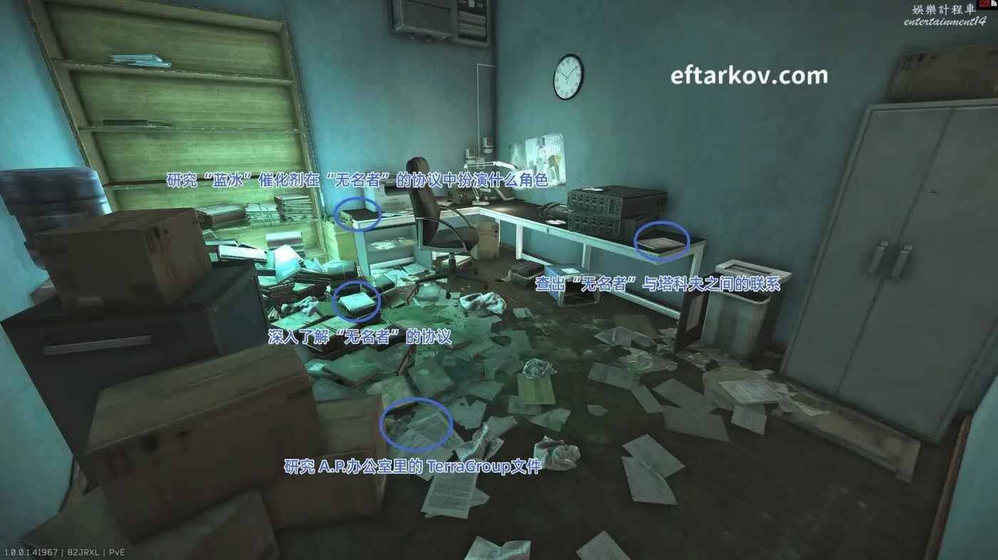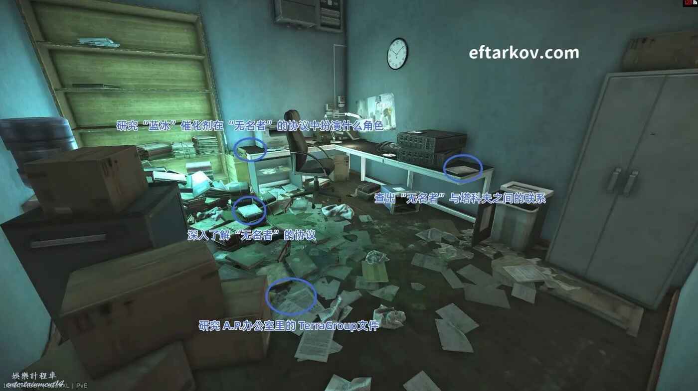 在街區的TerraGroup辦公區桌子上閱讀文件解鎖本劇情