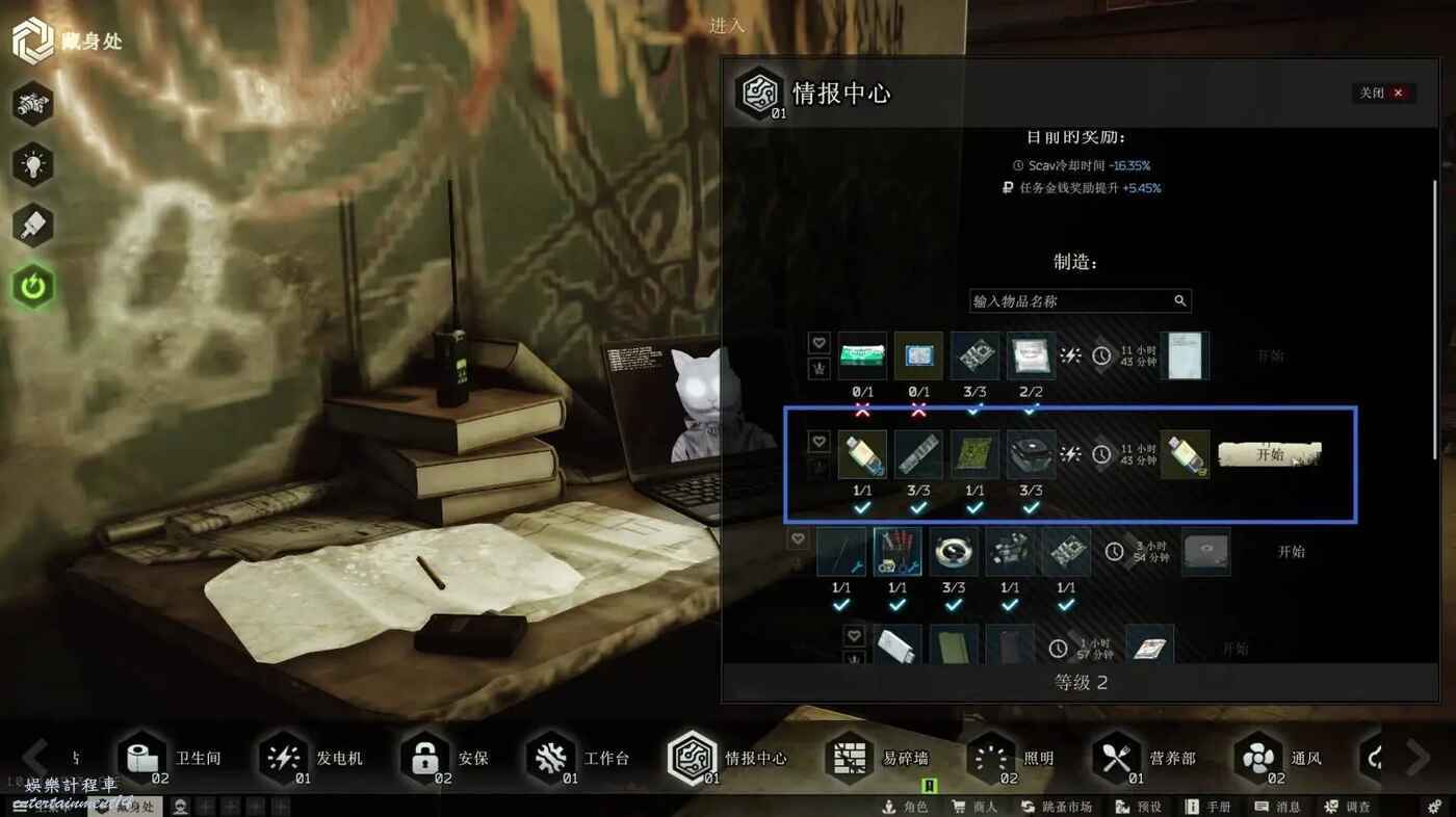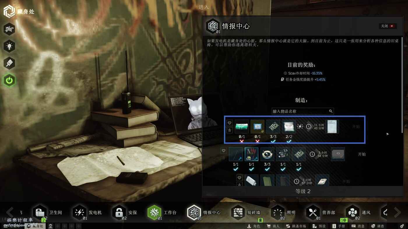-藏身處 情報中心 達到 3 級