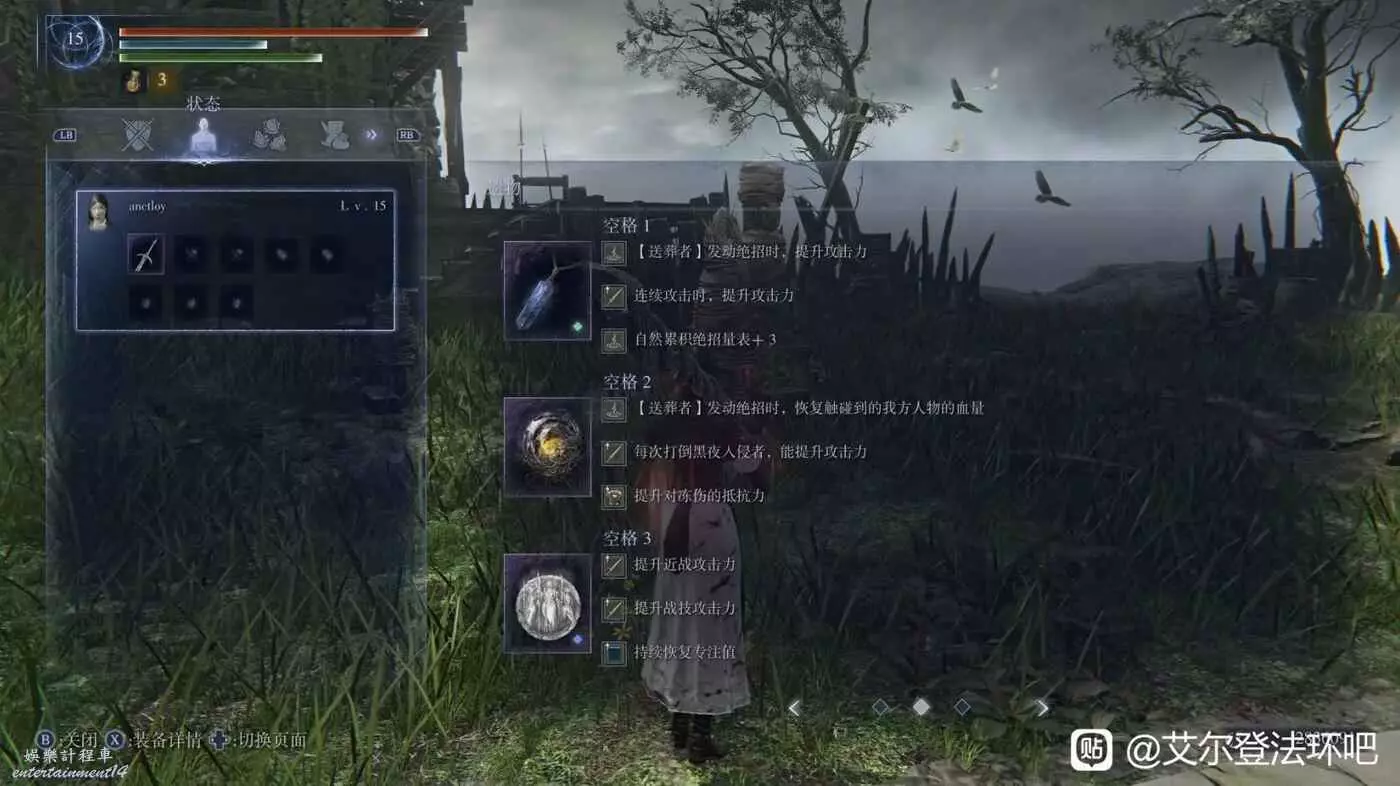 遺物帶的追憶和新夜王,深夜遺物疊的屬性增傷,實測下來修女用特大劍2到3刀就能觸發連擊增傷和技藝增傷,而且追憶遺物給的連擊增傷可以疊4次的,在buff吃滿的情況下武器面板蹭蹭往上漲。