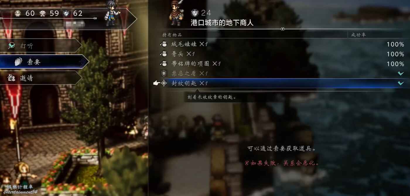 歧路旅人 0 (OCTOPATH TRAVELER 0) 神器秩序之杖獲得方法 10 12 月 2025-12-10 廣告 來源:互聯網 核心前提 獲得對應的“杖的封紋鑰匙”是解鎖神器“秩序之杖”的必要前提。 前往格蘭波特地區。到達後向右走,進入攤販街。 在攤販街的最裡面,找到名為“港口城市的地下商人”的NPC。 對他使用“索要”地圖指令,即可從他身上獲得“杖的封紋鑰匙”。 解鎖神器 成功索要到“杖的封紋鑰匙”後,即可前往“秩序之杖”所在的神器地點,使用該鑰匙獲得這件神器。