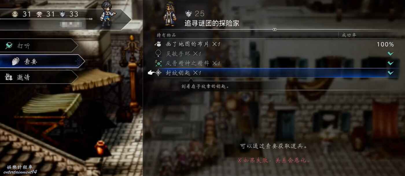 歧路旅人 0 (OCTOPATH TRAVELER 0) 神器宵暗之扇獲得方法 10 12 月 2025-12-10 廣告 來源:互聯網 核心前提 獲得對應的“扇的封紋鑰匙”是解鎖神器“宵暗之扇”的必要前提。 前往桑蘭多地區的斯弗拉塔爾加地點。 在該地點找到名為“追尋謎團的探險家”的NPC。 對他使用“索要”地圖指令,即可從他身上獲得“扇的封紋鑰匙”。 解鎖神器 成功索要到“扇的封紋鑰匙”後,即可前往“宵暗之扇”所在的神器地點,使用該鑰匙獲得這件神器。