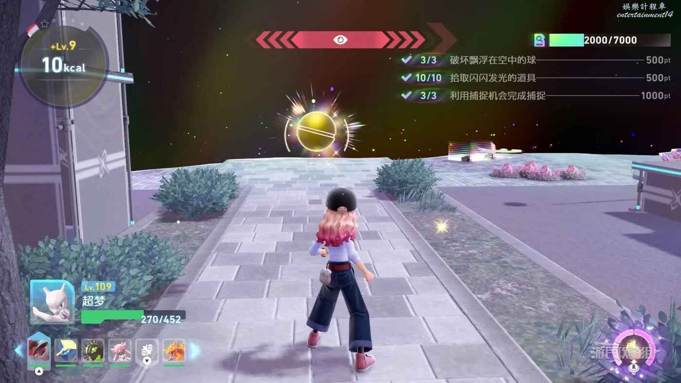完成3個課題任務後,區域內會出現金色的獎勵球。從獎勵球中可以獲得大量異次元樹果,請務必在時限內將其破壞。與普通漂浮的精靈球類似,用寶可夢的攻擊招式可以將獎勵球破壞掉。