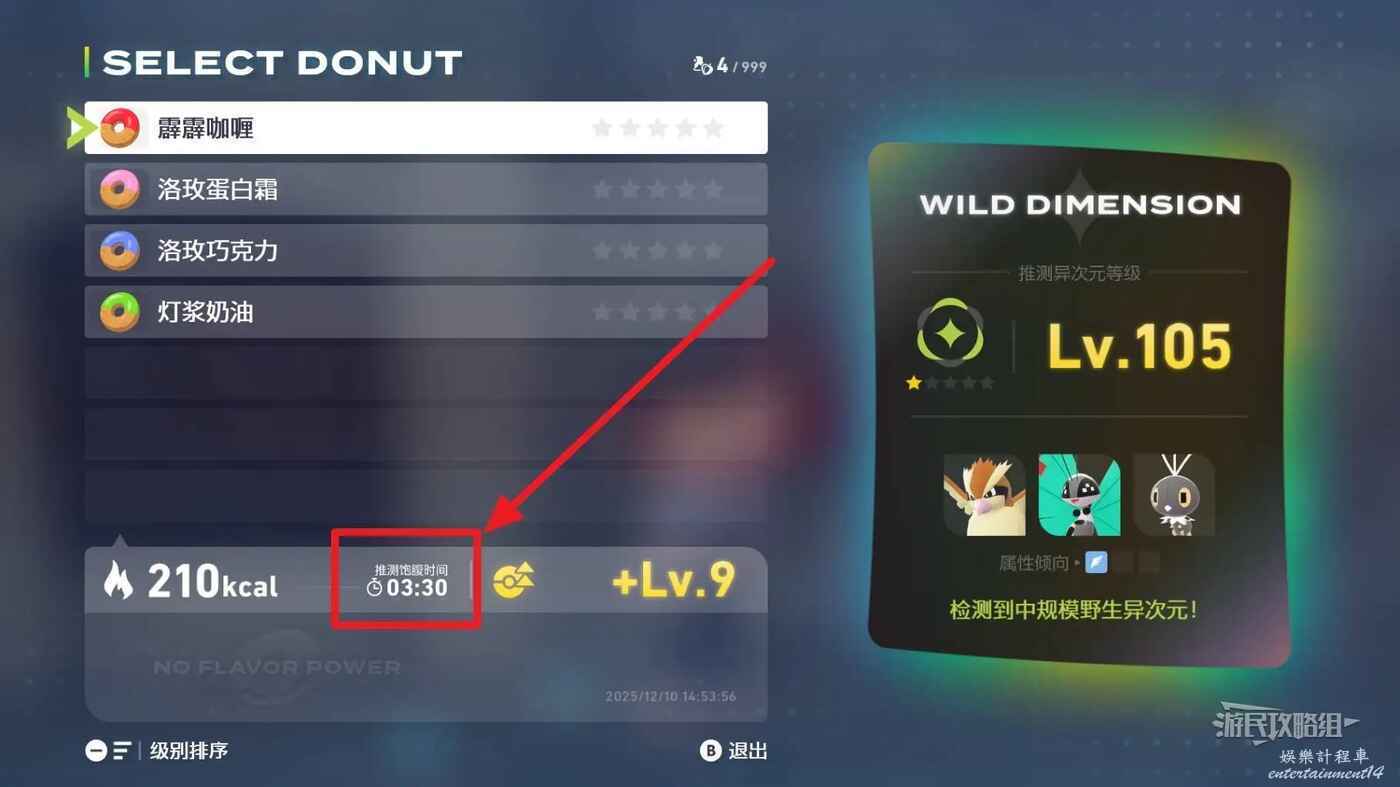 異次元密阿雷中會出現Lv100以上的寶可夢,通過甜甜圈可提升己方寶可夢等級,建議優先製作提升等級上限加成較大的甜甜圈,以降低在異次元密阿雷戰鬥的難度。