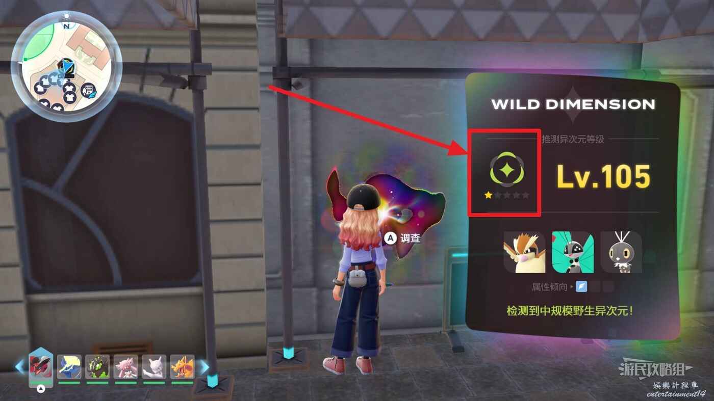 此時密阿雷各地會出現異次元扭洞。前往扭洞處,即可消耗甜甜圈進入異次元密阿雷。在地圖畫面中將游標移動到扭洞處,可以查看會出現寶可夢的屬性,建議根據出現的寶可夢來搭配優勢屬性的寶可夢隊伍。