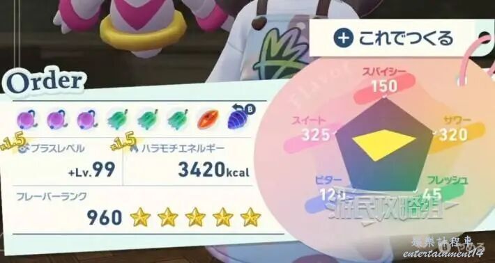 製作條件:甜>310、辣>100、酸>310、苦>40、鮮>40