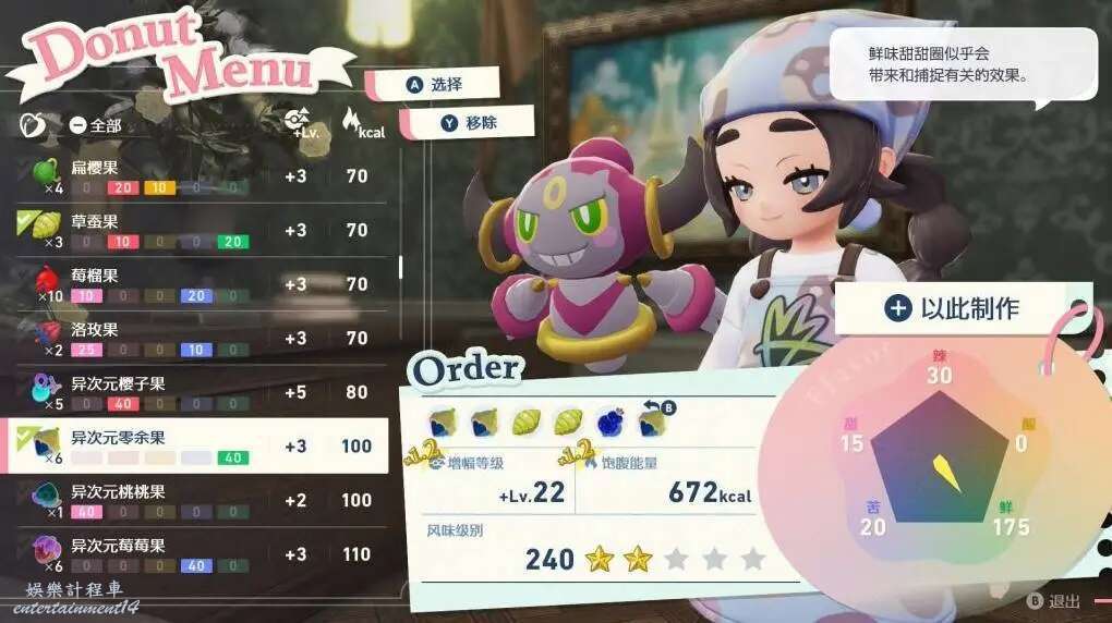 寶可夢傳說 Z-A DLC超次元爆湧樹果效果總結 11 12 月 2025-12-11 廣告 作者:白晝約 來源:NGA 其實蘿莉媽媽有告訴一些樹果效果。 我個人總結就是如下 甜:粉色,頭目,小小,大大,閃光; 鮮:綠色,捕獲率; 辣:紅色,攻擊加成; 苦:藍色,防禦加成; 酸:橙色,道具和mega相關 最後祝各位都能都能撤離前打到金色獎勵球。