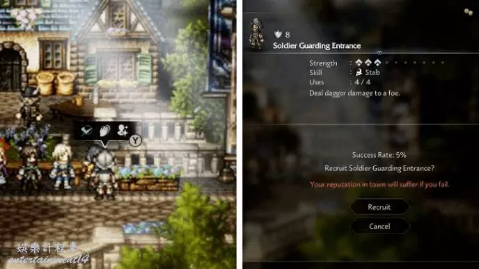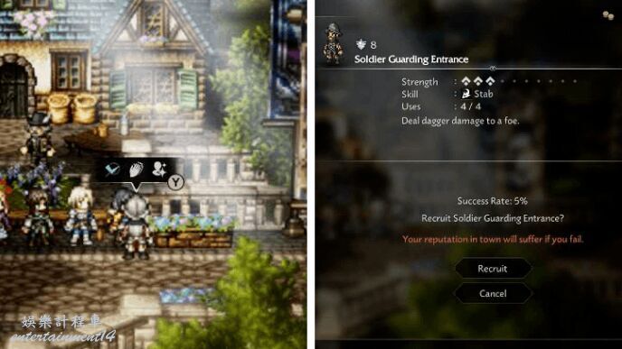 招募方式包括直接勸說、付費雇傭或在戰鬥中使其折服。