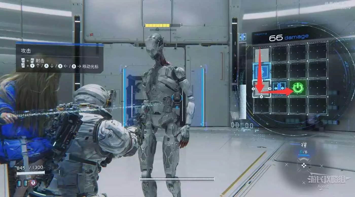 瞄準敵人時,移動侵入矩陣上的游標,連接至綠色執行節點即可完成侵入。