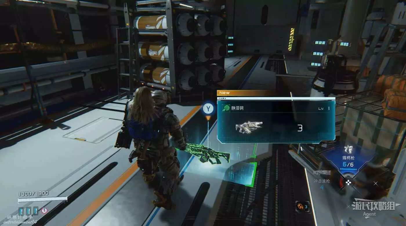 出門右邊有個箱子,往前走撿到靜滯網槍,可發射電磁罩束縛住敵人,為侵入提供更多的寶貴時間。