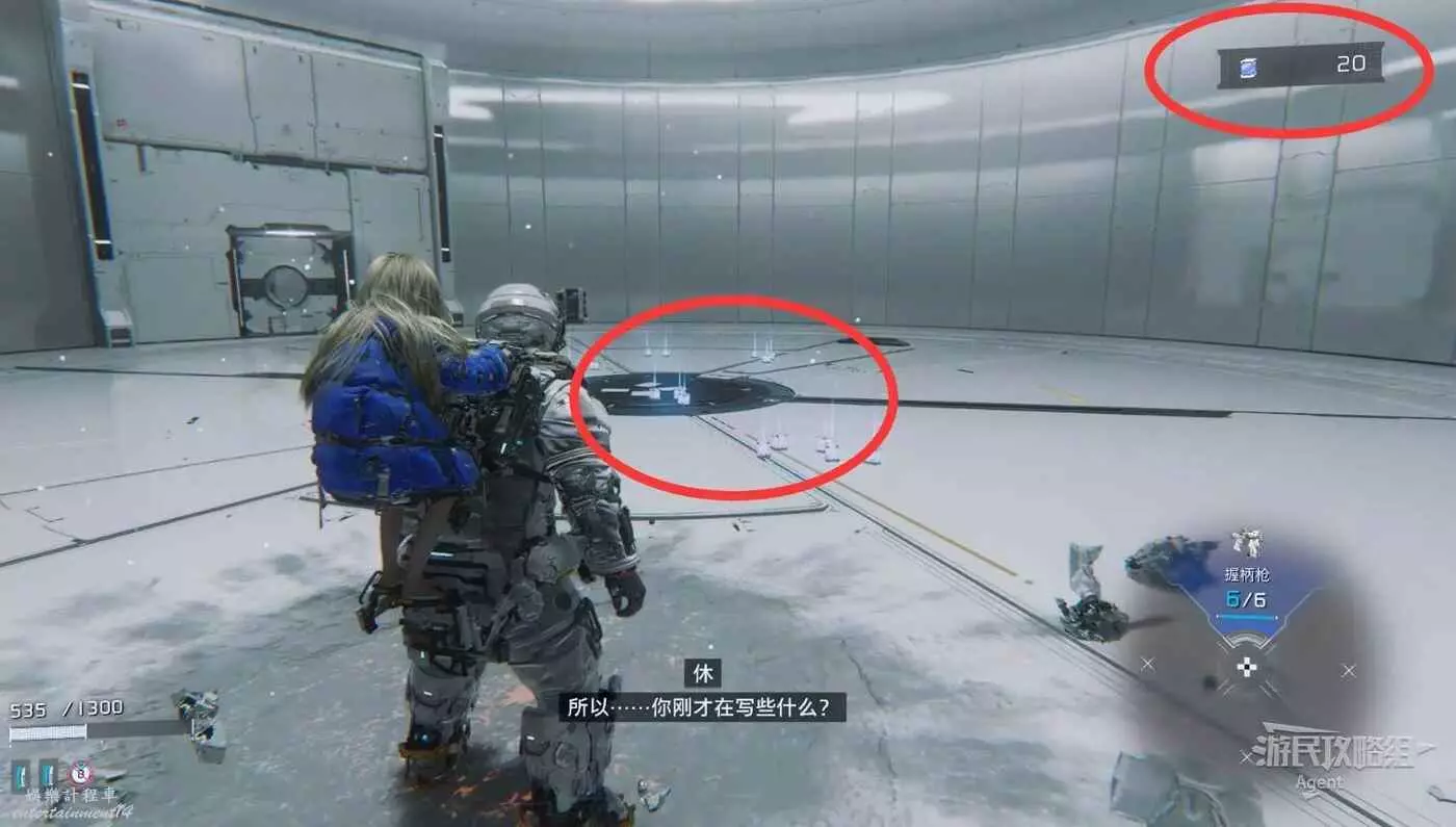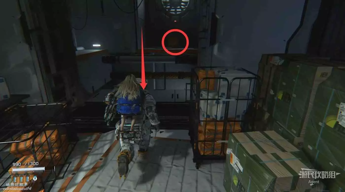 消滅敵人後再次啟動電梯,電梯升到頂來到一片大型圓形區域,有大量物資可撿,等下打BOSS時要用。