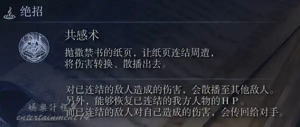對敵:你對單個敵人造成的直接傷害,會有20%傳遞給其他敵方目標。