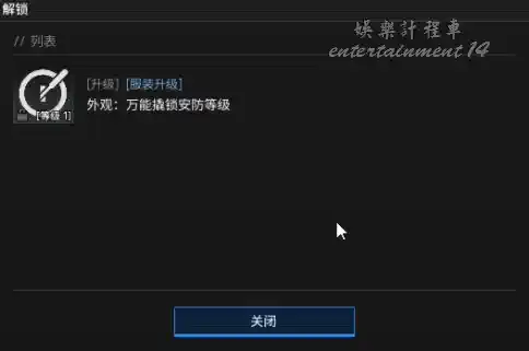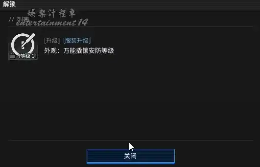 解鎖獲得:[升級][服裝升級]外觀:萬能撬鎖安防等級