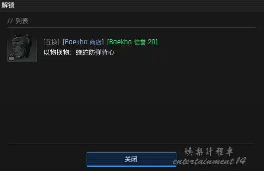 解鎖獲得:[互換][Baekho商店][Baekho 信譽 20]火物換物:蜂蛇防彈背心