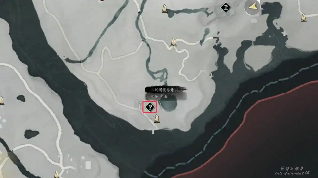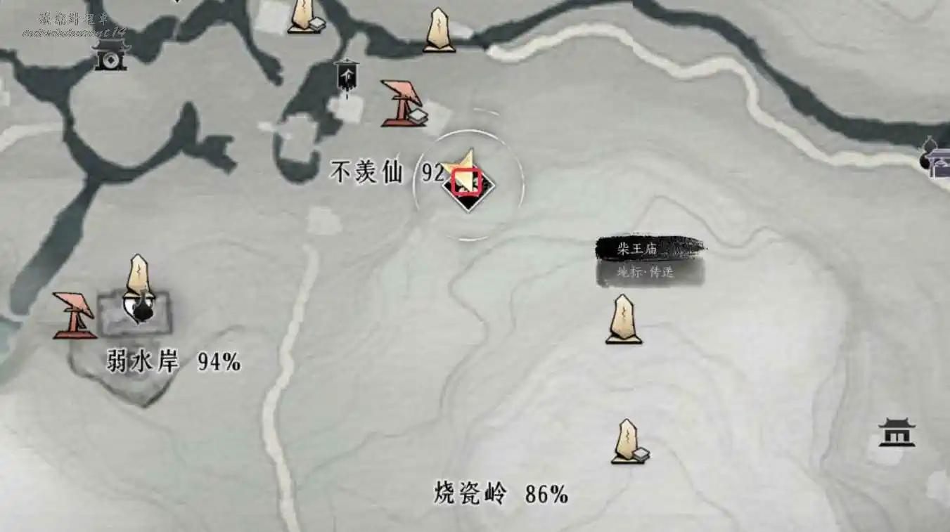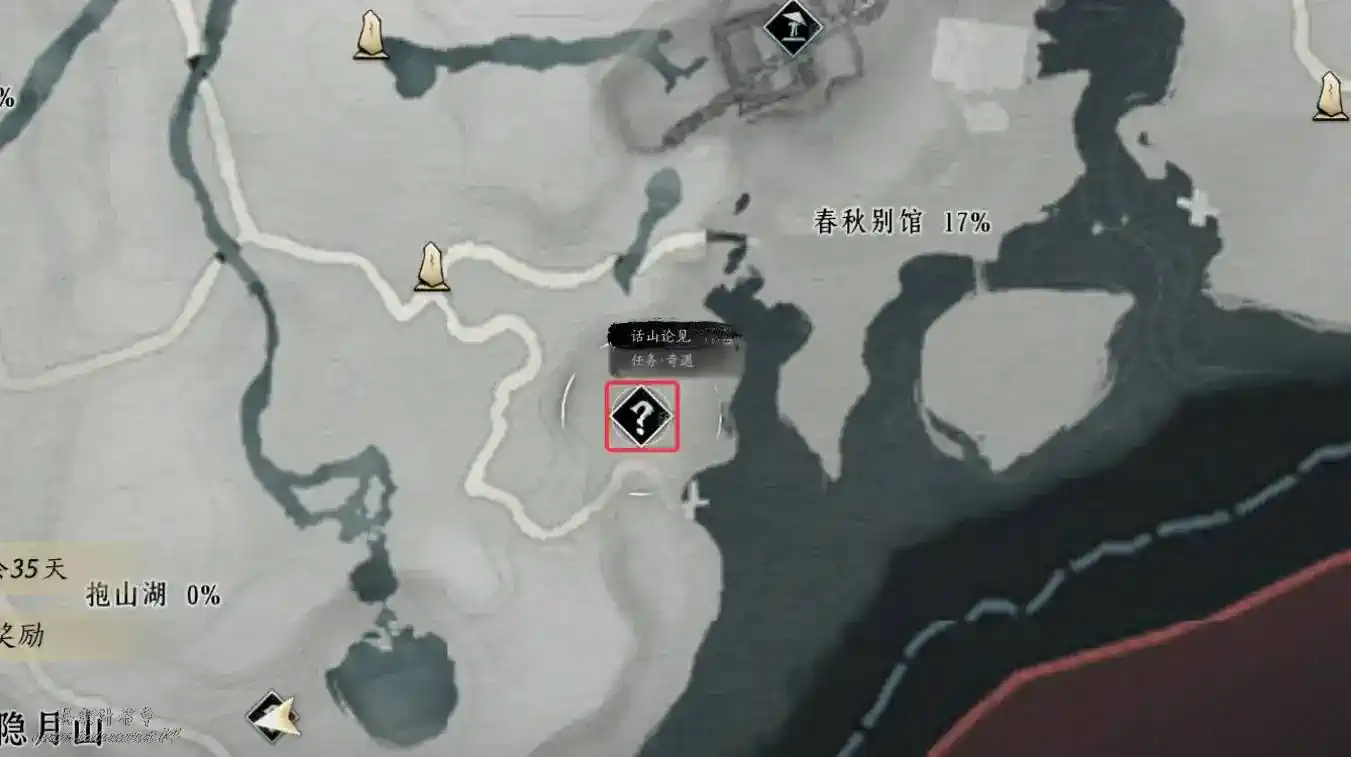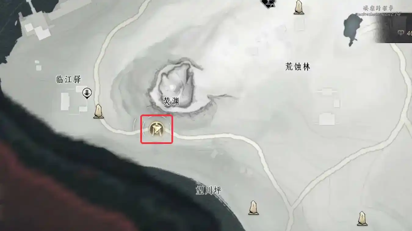 2、地圖界碑解鎖至下圖任務地點處與繡錦鼠對話即可觸發任務。