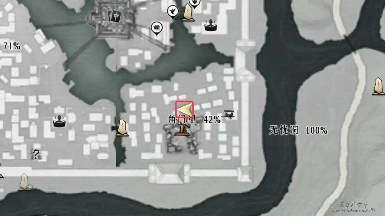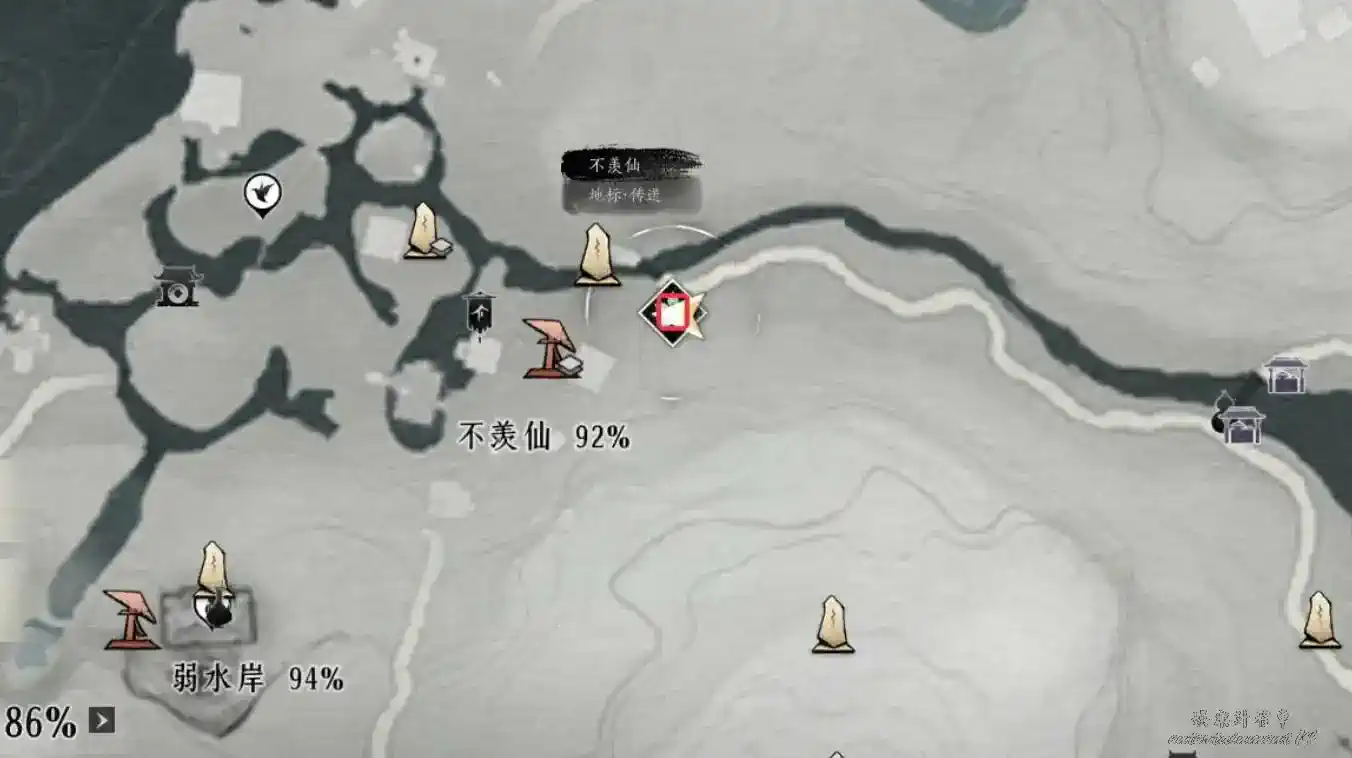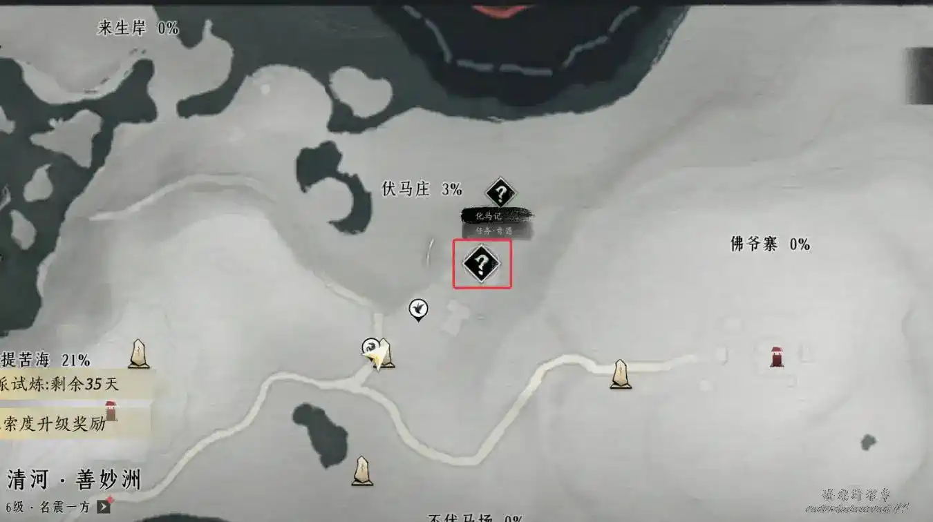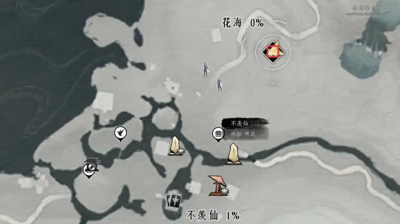 2、地圖界碑解鎖至下圖任務地點處與繡錦鼠對話即可觸發任務。