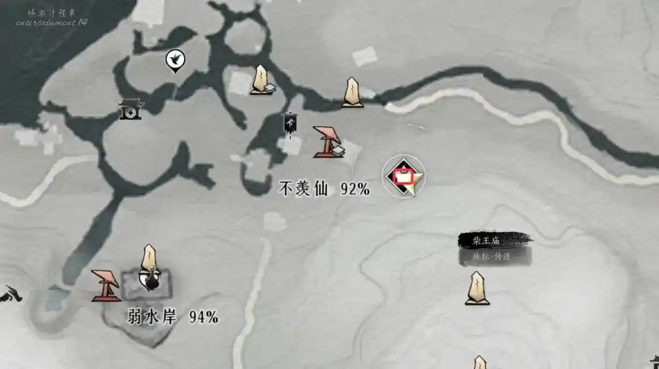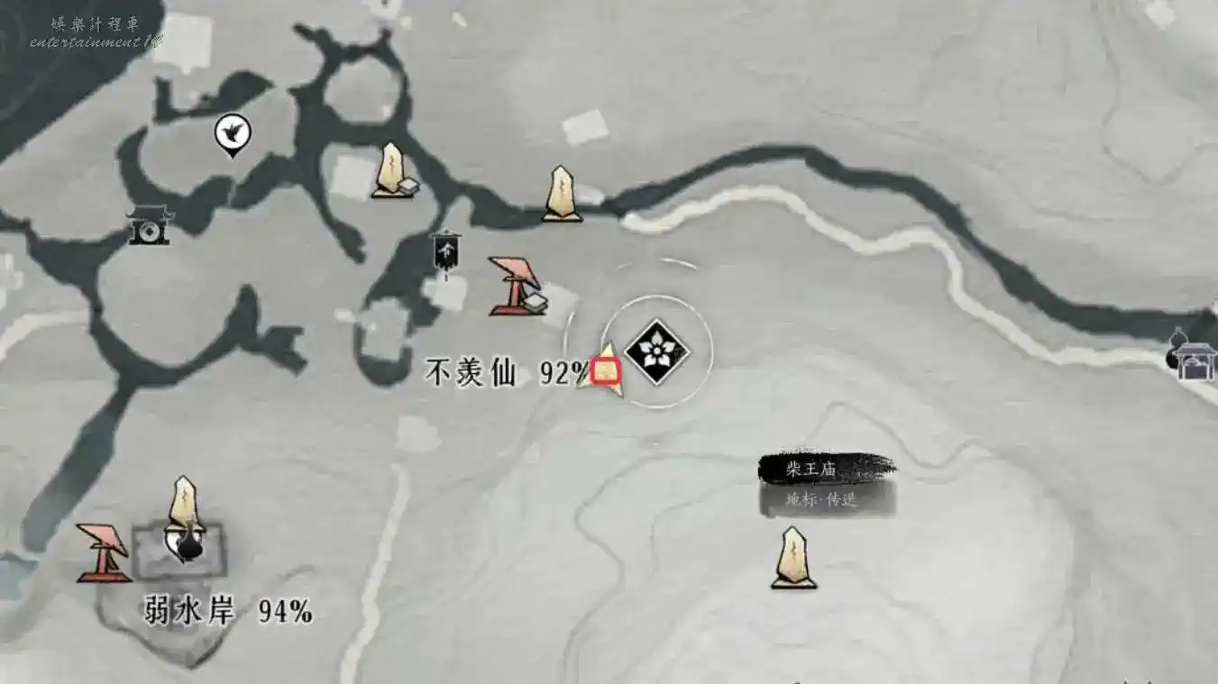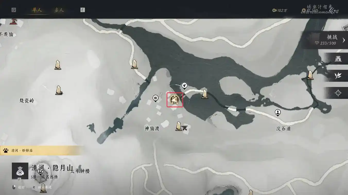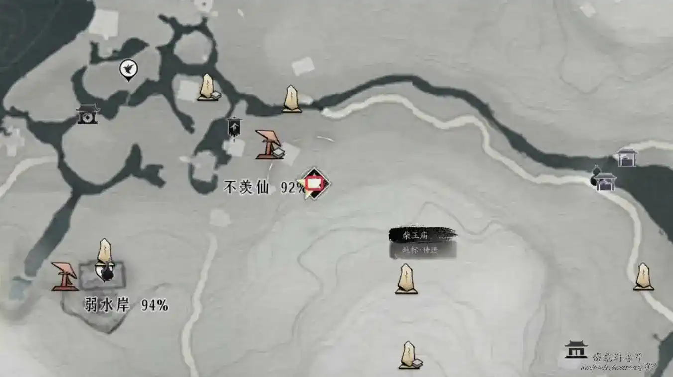 2、地圖界碑解鎖至下圖任務地點處與繡錦鼠對話即可觸發任務。