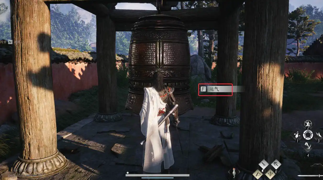 找到四口銅鐘,與其互動,運氣敲響銅鐘後增加領悟值,領悟值滿即可習得。