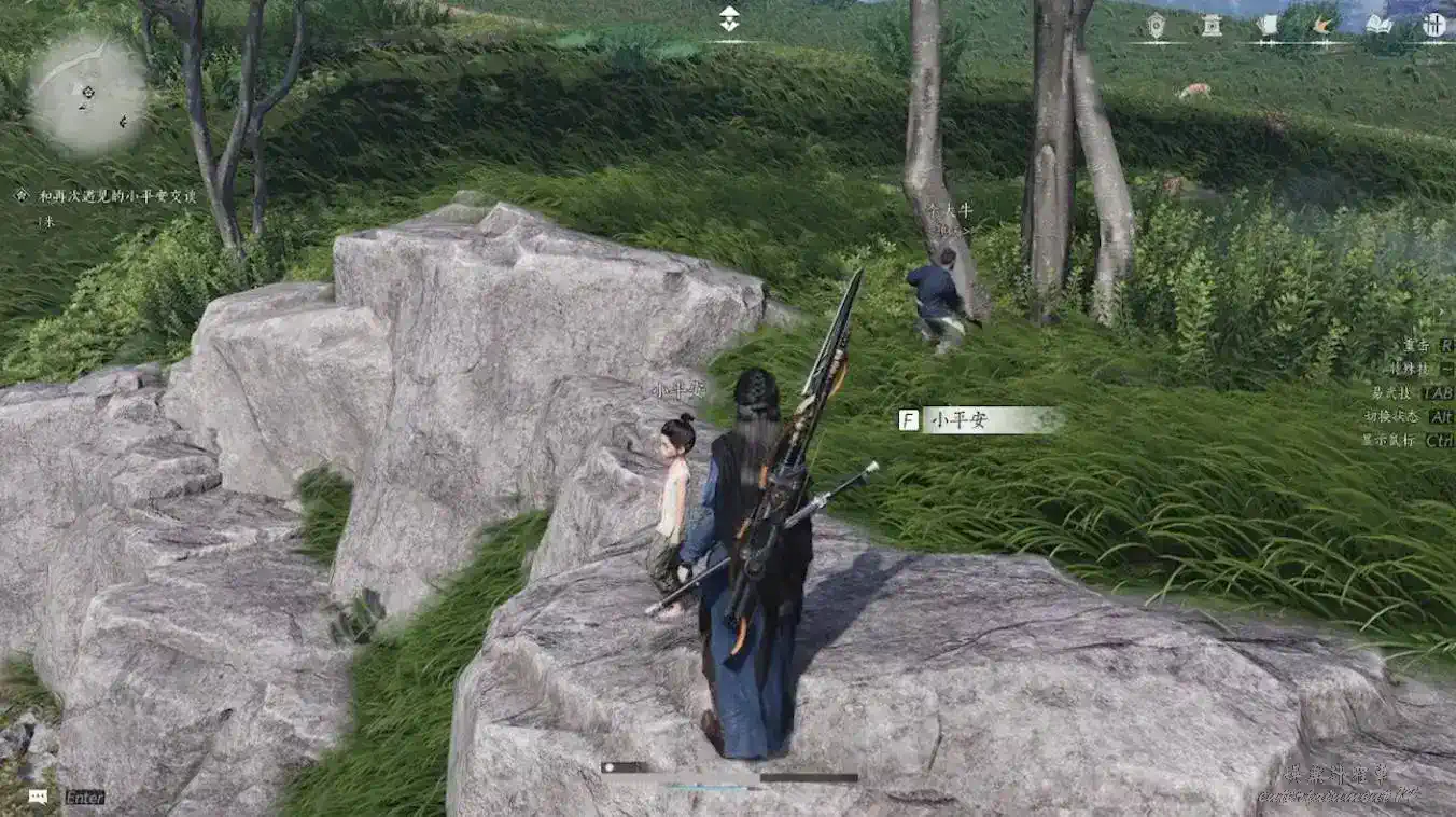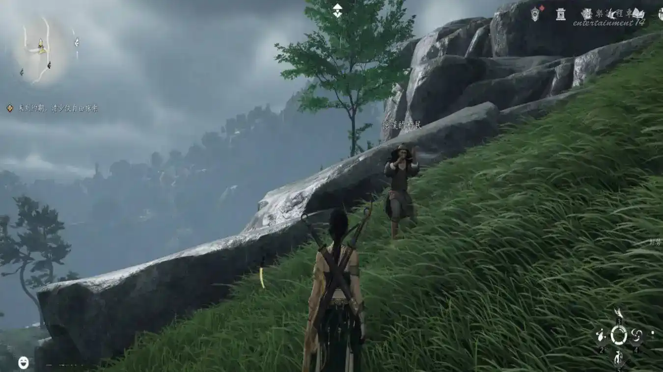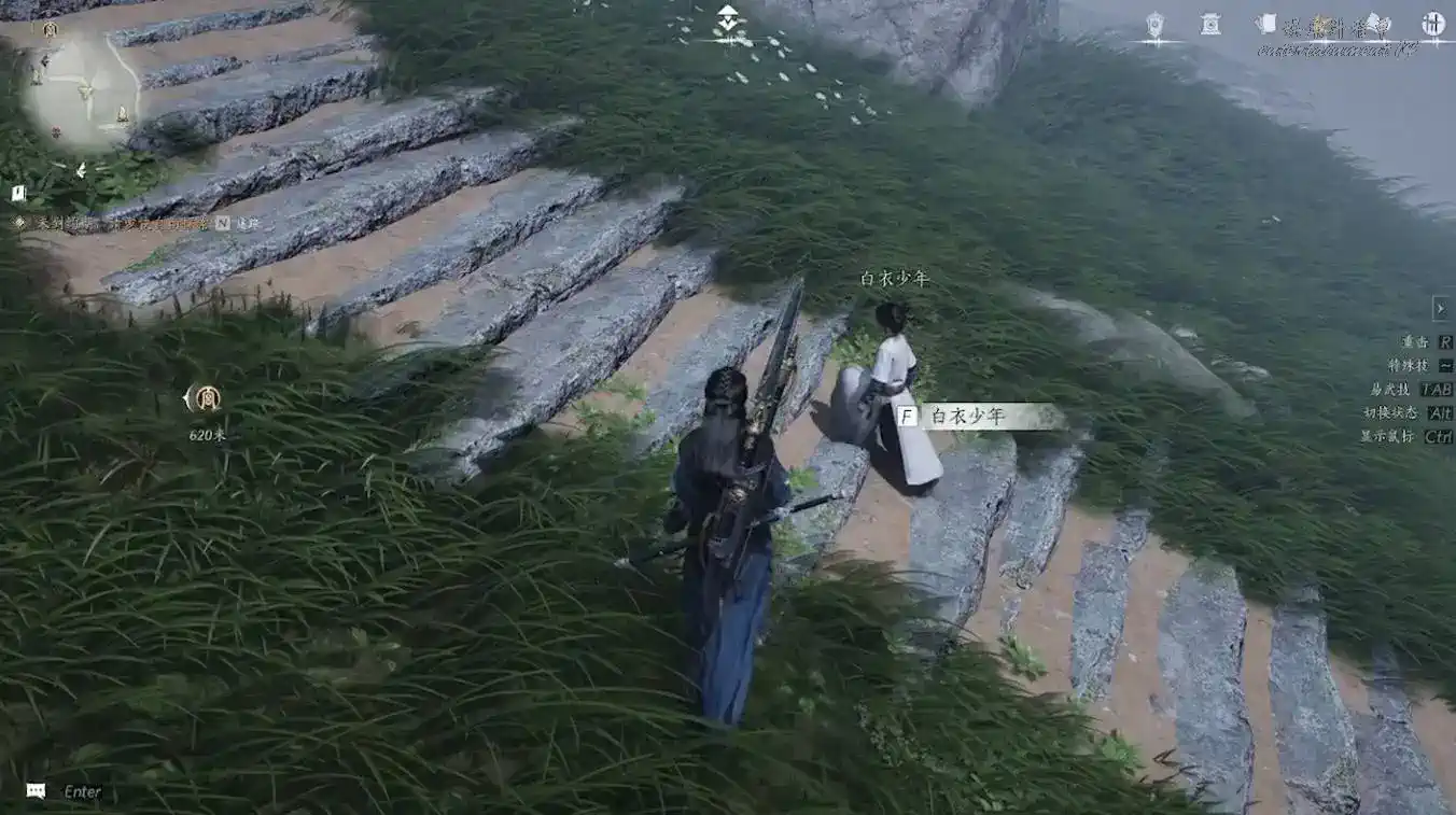 2、隱月山地圖解鎖後,在其附近的山腳下找到時一墨(可以走到接近地點後使用聽風辨位元來找)與其對話即可觸發任務。