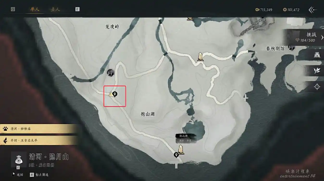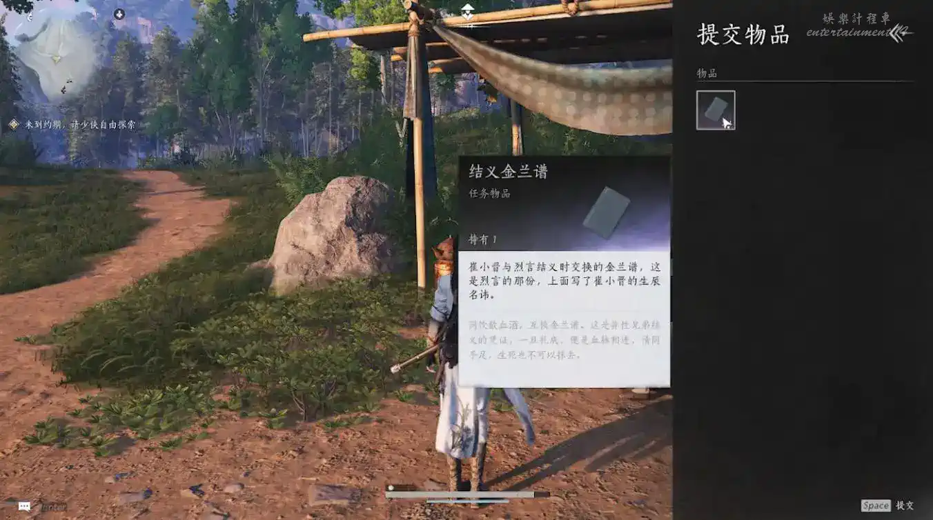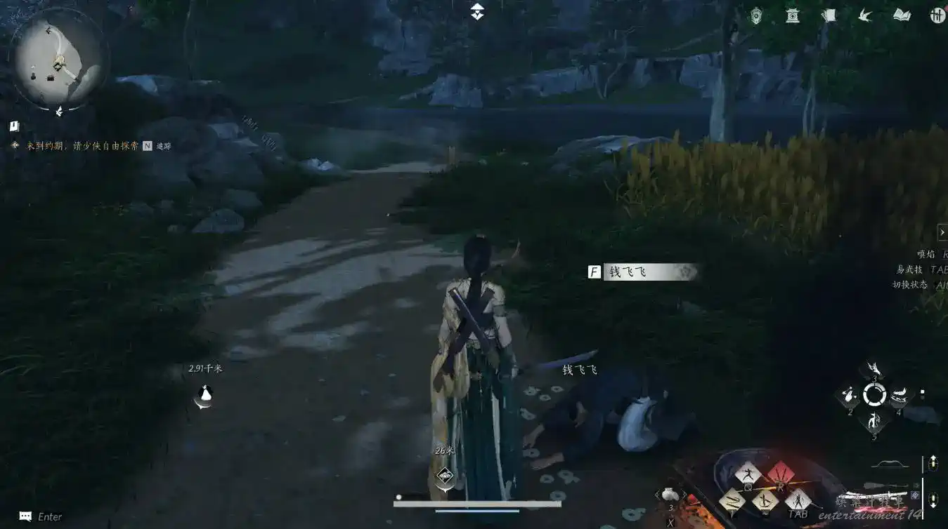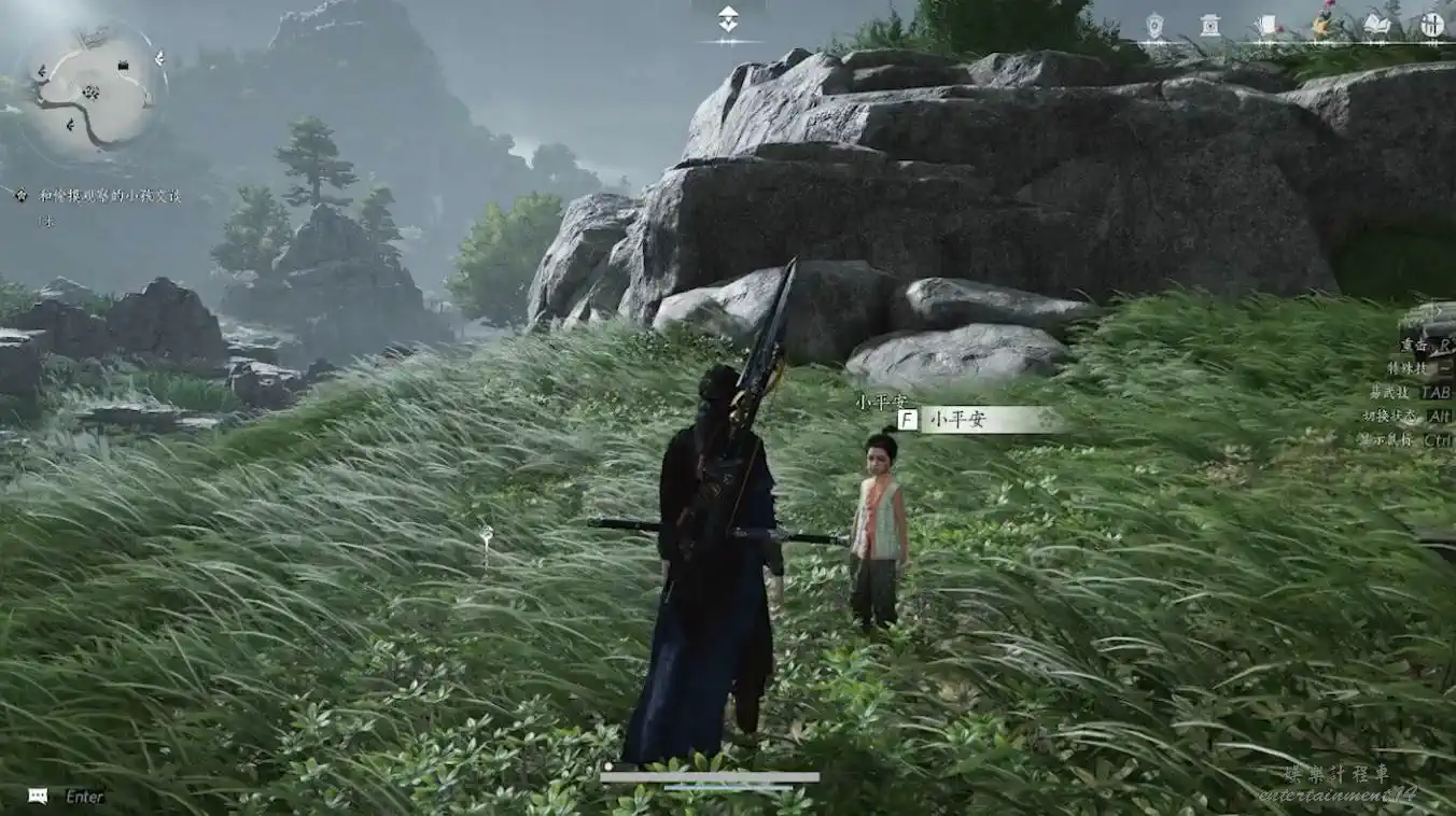 2、隱月山地圖解鎖後,在其附近的山腳下找到時一墨(可以走到接近地點後使用聽風辨位元來找)與其對話即可觸發任務。