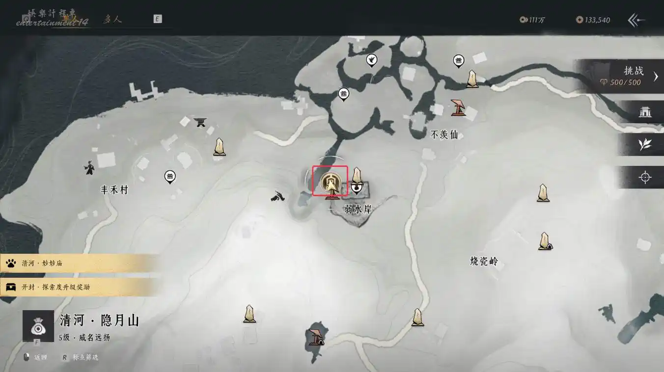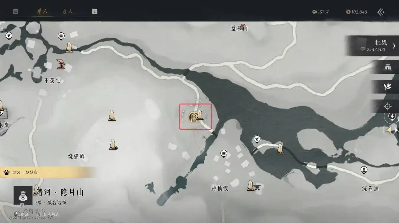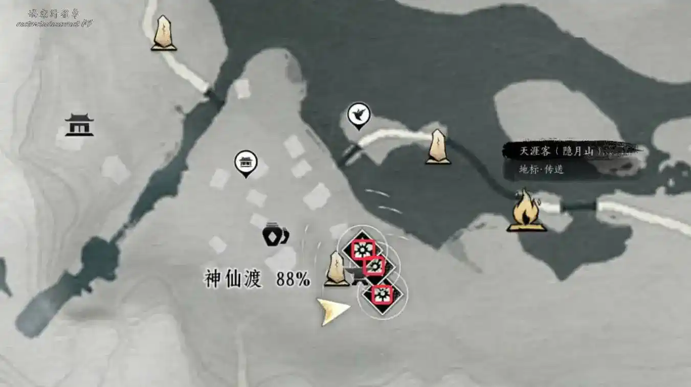 1、解鎖隱月山地圖;
