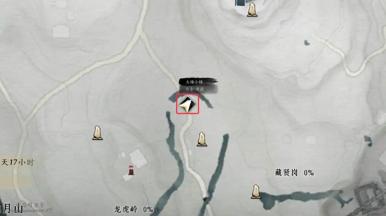 2、將地圖解鎖至隱月山后有幾率觸發任務,可在鹿食林界碑附近與王鐵錘對話。