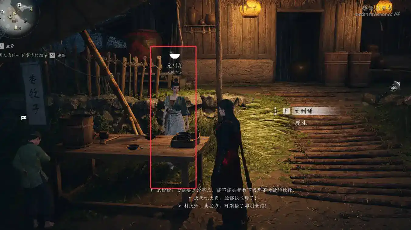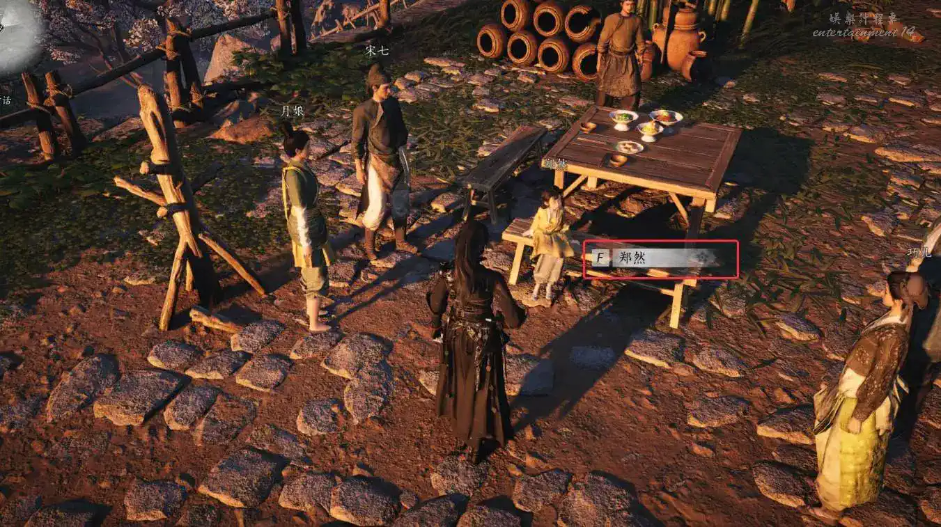 2、跟隨鄭然移動,找到神仙釀魚後與張安康對話;