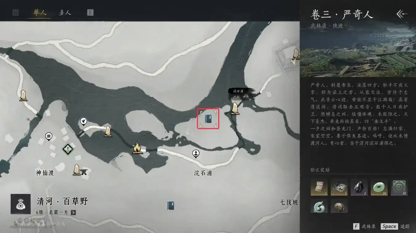 地圖解鎖至浣石浦後,在浣石浦界碑附近找到嚴奇人,與其對話即可觸發任務